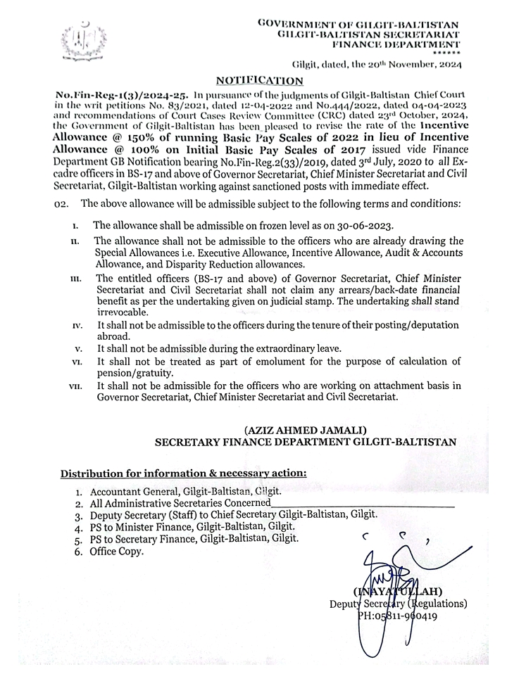 Incentive Allowance 2024 - Government of Gilgit-Baltistan