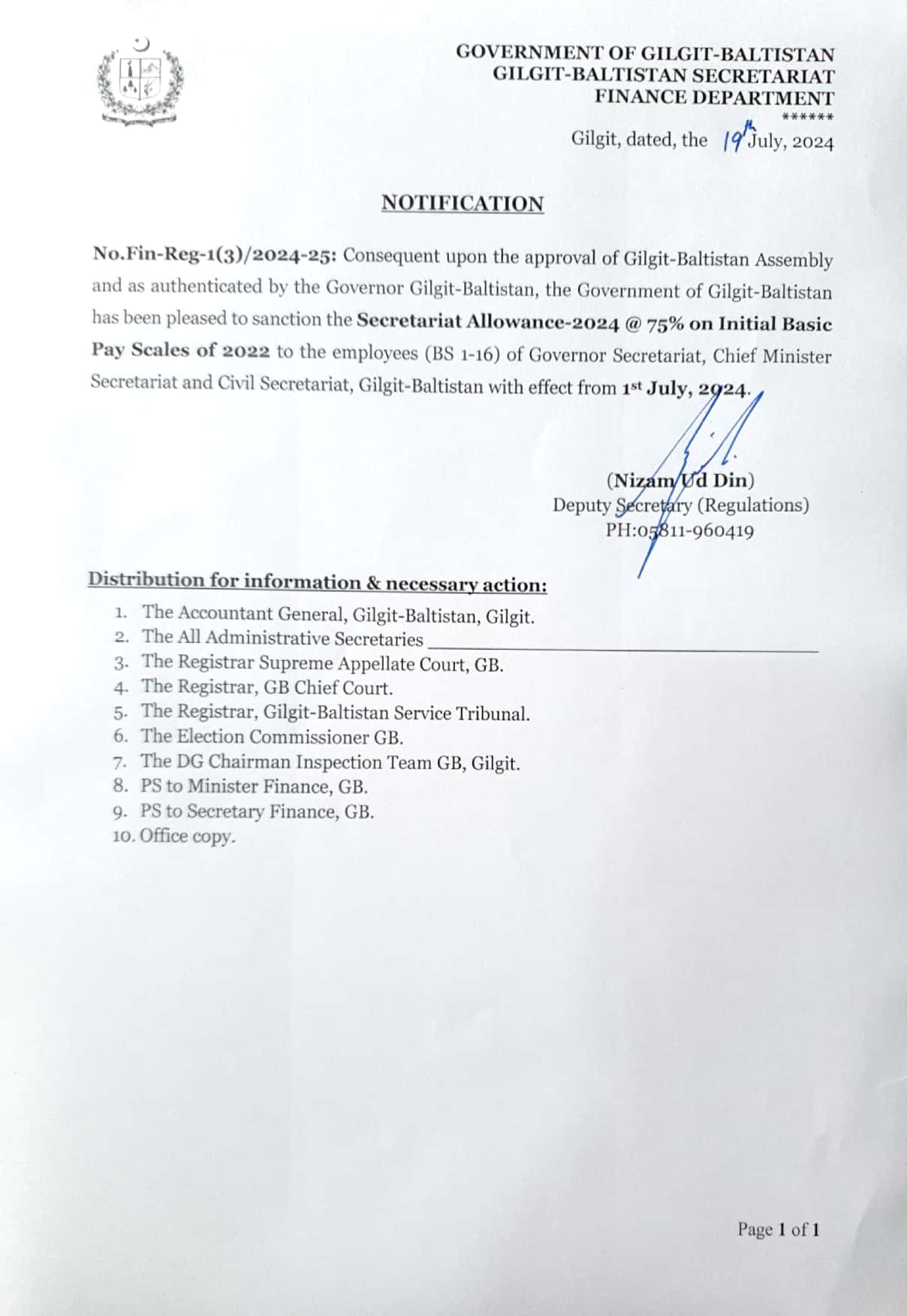 | 19 | Notification Secretariat-Allowance 2024 - Government of Gilgit-Baltistan | Download |