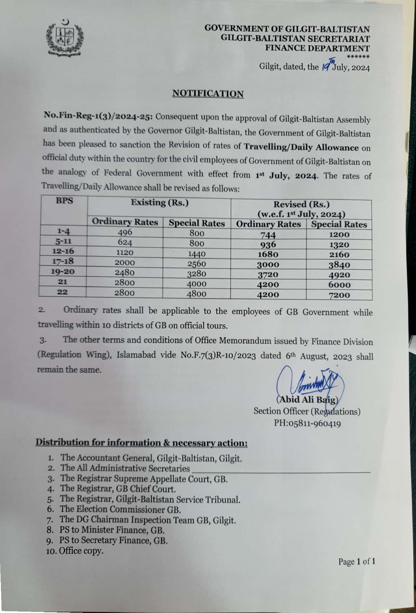 | 20 | Notification of Travelling & Daily Allowance 2024 - Government of Gilgit-Baltistan | Download |